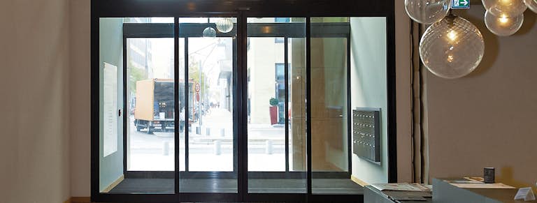 Dvere s otočným krídlom v kombinácii s pohonom dverí ponúkajú bezbariérovosť vo verejných priestoroch, na pracovisku a doma. Pre bezbariérové prechody ponúka Hörmann oceľové protipožiarne dvere, ako aj plne presklené protipožiarne dvere s pohonom dverí HDO 200 / 300 a vnútorné dvere v kombinácii s pohonom vnútorných dverí PortaMatic.