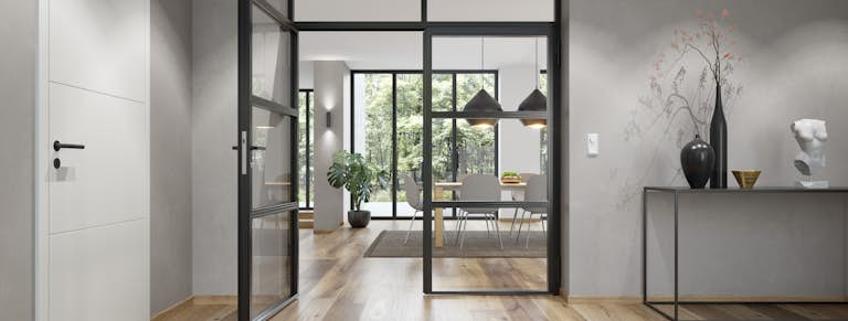 Želáte si harmonické prostredie, veľa svetla a otvorené priestory? Dvere Loft od spoločnosti Hörmann sú na to ako stvorené. Jemný a výrazný dizajn dverí Loft z ocele a skla zabezpečuje moderný vzhľad a dá sa kombinovať s rôznymi štýlmi zariadenia.